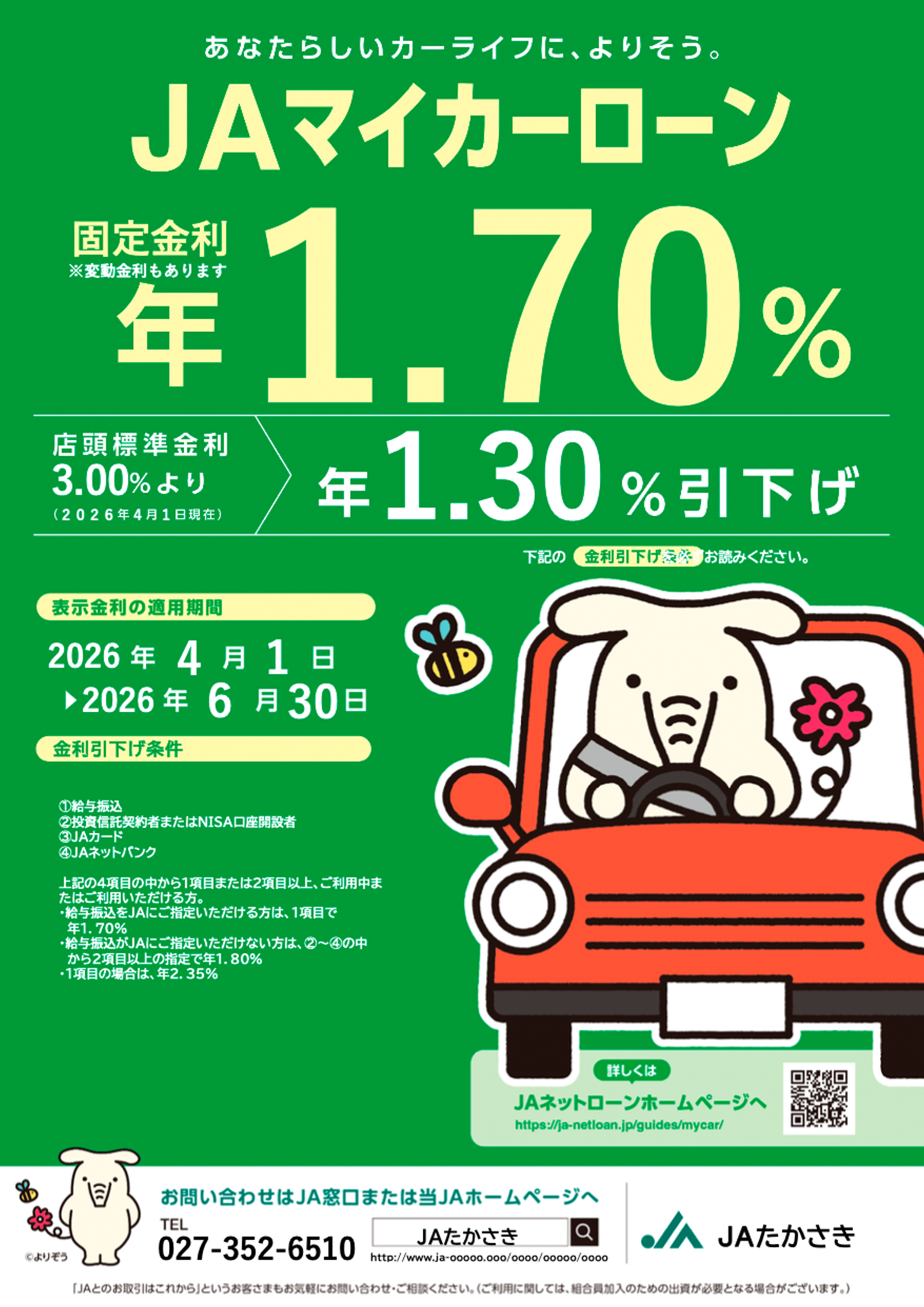 「JAマイカーローン」キャンペーン情報を掲載しました